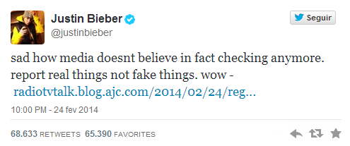 “É triste como a mídia não acredita mais em fatos verdadeiros. Publiquem coisas reais, não coisas falsas. Wow”